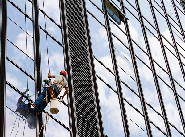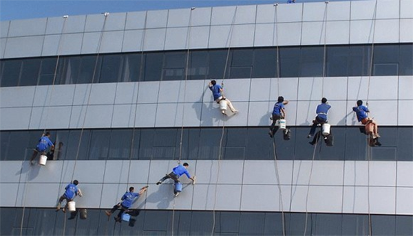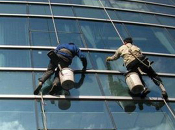 外墻清洗分為吊板方式和擦窗方式。吊板方式是用吊繩、吊板將人吊到工作位置進行清洗。這種型式比較簡單,成本也低,只要工人身體素質好、繩子連接牢固就可以進行。